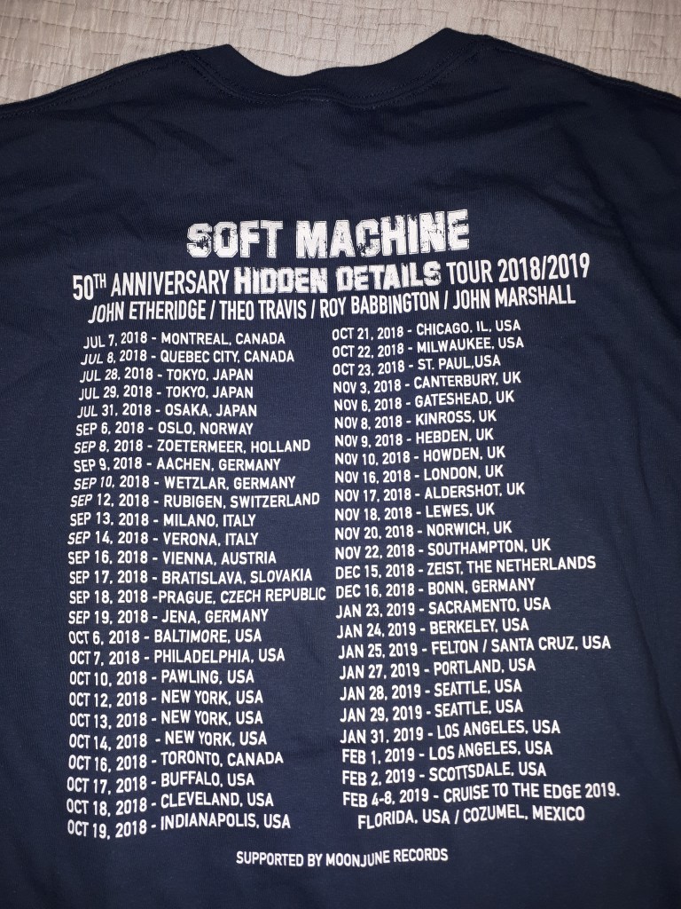 ‘Hidden Details’, that first Soft Machine album for 37 years is a superb, multi-faceted album well worthy of the band name, and has been followed by a live release ‘Live at the Baked Potato’, which, as Theo eloquently puts it, “It’s a good version of what we do on a good night. It’s had a really positive response. I’m delighted. The CD, the vinyl, people like the recording. Yesterday I (even) saw several posts on Facebook and people were raving about the cover, which was nice too! Originally it was going to be a vinyl-only release, last October or November for the British tour for something to tie us over to the studio album which hopefully we were going to record this spring or summer. The vinyl was delayed until March and then we said that with everything going on we’re not touring this spring and it will probably be next year before the new studio album is released, so we’ll do a proper release (of ‘Baked Potato’) through John Etheridge’s label and Moonjune and Japan and we may as well do the full thing. We weren’t anticipating it, but it’s received a fantastic response.
