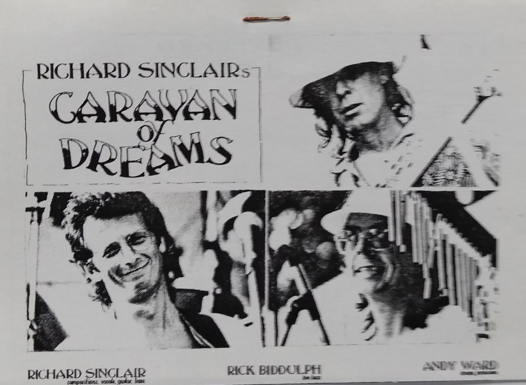Somewhat at the other end of the scale, as posted elsewhere on the Facelift website, was a journey with Dave, myself and aforementioned Nick and then wife Julie to see Richard Sinclair’s Caravan of Dreams over in Rotherham, part of a series of gigs put on by the Classic Rock Society. After an interminable journey via Snake Pass we finally got to the venue, I think for once not on time, presumably because Dave hadn’t been in charge of the itinerary, and somewhat farcically in Nick’s Fiat Uno, farcical because Dave was cooped up in the back seat, legs around his ears. Still at least for once he could properly sample the full range of local beers, as he was excused from driving for the night. At some point during the first set Julie remembered having left a pan of soup boiling on the hob back home in Moss Side, and early tracks were overshadowed by some frantic calls on a payphone in the foyer back to Manchester to people who might be able to check. At one point a friend was dispatched from Fallowfield (somewhat further south) to the house to check for potential signs of smoke, but the house appeared to be intact.