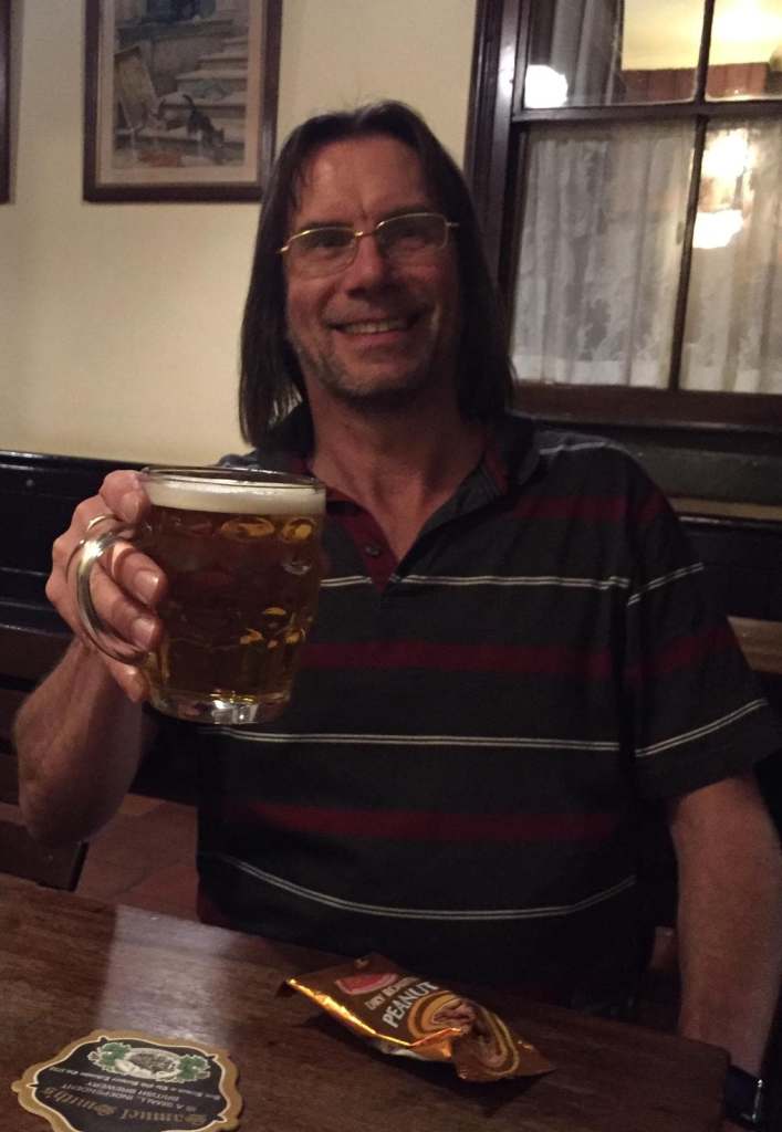 Dave had a trusty if rather ancient van, I think it may have been an Bedford estate or something similar and this opened up new avenues for me. We travelled far and wide in search of gigs in the early Nineties: Wolverhampton to see Caravan in 1991 for my 25th birthday, a Daevid Allen solo gig in Stoke where a tripping punter ruined the performance by ranting throughout the night, (his misplaced love for Daevid degenerated into shouting all over his ballads and poetry), Richard Sinclair’s RSVP in Chester which teamed up Richard with a dream band including, I think, Patrice Meyer and Didier Malherbe, and much later on with Brainville, back in Stoke, where Hugh Hopper and Pip Pyle joined us at the bar between sets. Wherever the gig was, Dave always had it meticulously planned: details of the venue, likely start time of the band, suggested pick up time for me, and nominated CAMRA pub we would visit pre-gig, because Dave also had an encyclopaedic knowledge of real ale hostelries and what guest beers would likely be put on. The pubs weren’t always particularly salubrious: the era of widescale microbreweries and craft beer gentrification was years ahead, Dave just wanted a good pint and was prepared to put in the hard yards to track it down. I was blissfully unaware of the merits of decent ale when I first met Dave, but have taken it on as a personal mission to self-educate myself thoroughly in the intervening years.