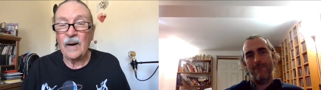 There were 4 live interviews in April, but first I explored the Bone connection: the US power trio which had Nick Didkovsky and John Roulat at its core and whose albums ‘Uses Wrist Grab’ and the posthumous ‘Gift of Purpose’ represent Hugh stretching out outrageously right at the end of his career: both musicians contributed their thoughts via email.