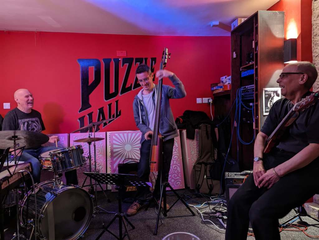 Gary mentioned that he’d played a gig the previous weekend in Manchester, which he’d not been totally happy with, but tonight’s performance in the face a couple of mishaps prior to the gig, was wonderfully executed. Normally he would play his own material, but tonight, shorn of his regular drummer (Dave Walsh stepped in), his quartet stuck to standards, airing pieces from Miles, Shorter, Brubeck, Joe Henderson and numerous others; slick, warm, mood enhancing expositions of a very high standard; Gary with his mellow guitar sound stretching his solos out across the top of the frets and adding subtle licks elsewhere, and exchanging solos with an extremely fine pianist in Andrzej Baranak whose performance was simply mesmerising. Throw in a sensitive but rock solid accompaniment from double bass player Ed Harrison and a captivating performance from a beaming drummer and this was a gig you could never take your eyes off: we’d spent the first set in an alcove looking at the back of Gary’s head (his best side, he quipped later) before moving directly in front of the band for the second half, close enough to nick enough his drink if we’d chosen to (we didn’t).