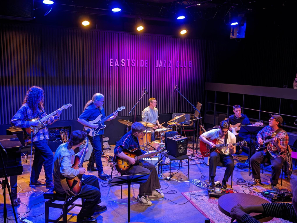 foreground are eventual winners of the Phil Miller Guitar Prize 2023: Joseph Hiles and James Coni