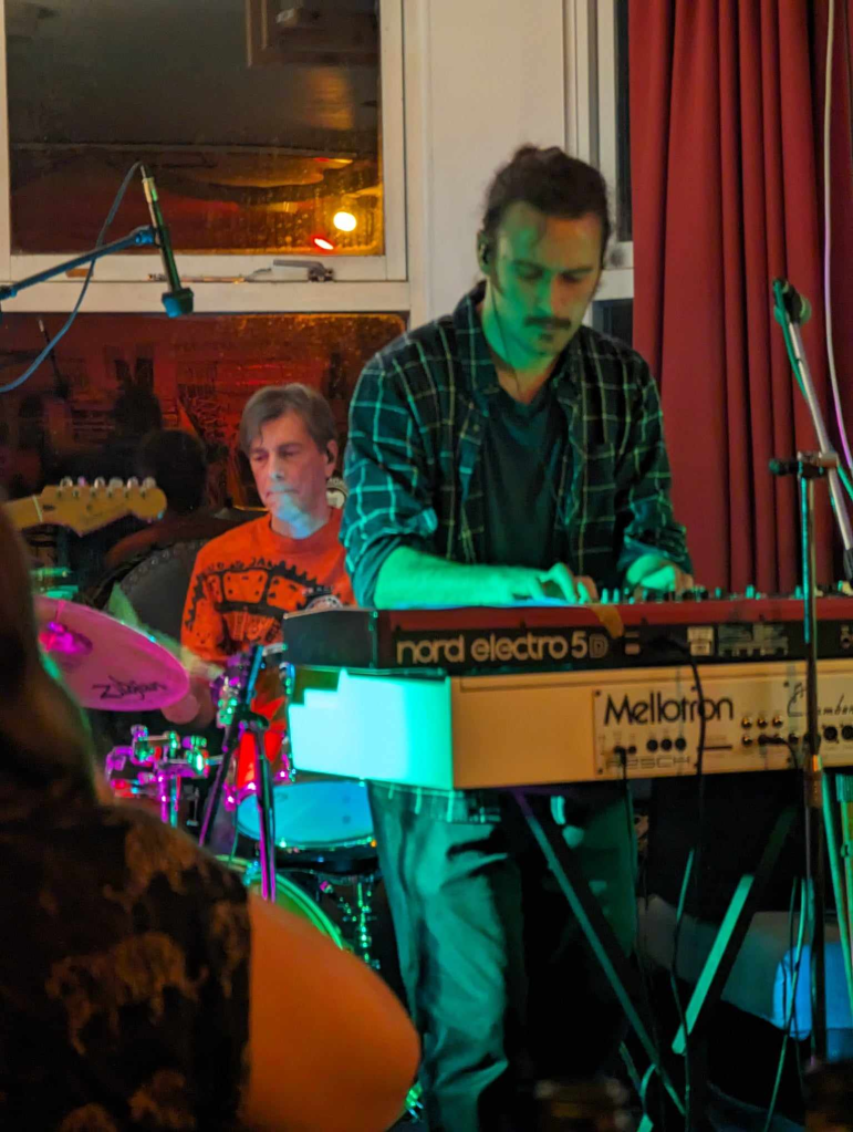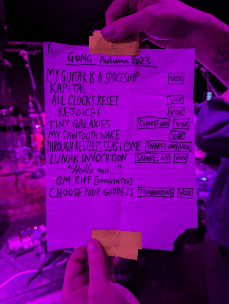 In the meantime, a sole Gong gig popped up at short notice in Sheffield. The back story is this: the Sheffield O2 arena, where I saw the two bands last year (see here) has been affected by the crumbling concrete phenomenon which closed so many schools in the autumn (wracked by Raac, if you like) – the dual gig therefore cancelled, leaving a hole in the schedule after the previous night’s concert at the Ritz in Manchester. I got wind of a possible Sheffield replacement on the band’s excellent Radio 6 session the previous Monday https://www.bbc.co.uk/programmes/m001s2pb, where it appeared that Gong had negotiated a short-notice slot at a venue called Sidney and Matilda’s.