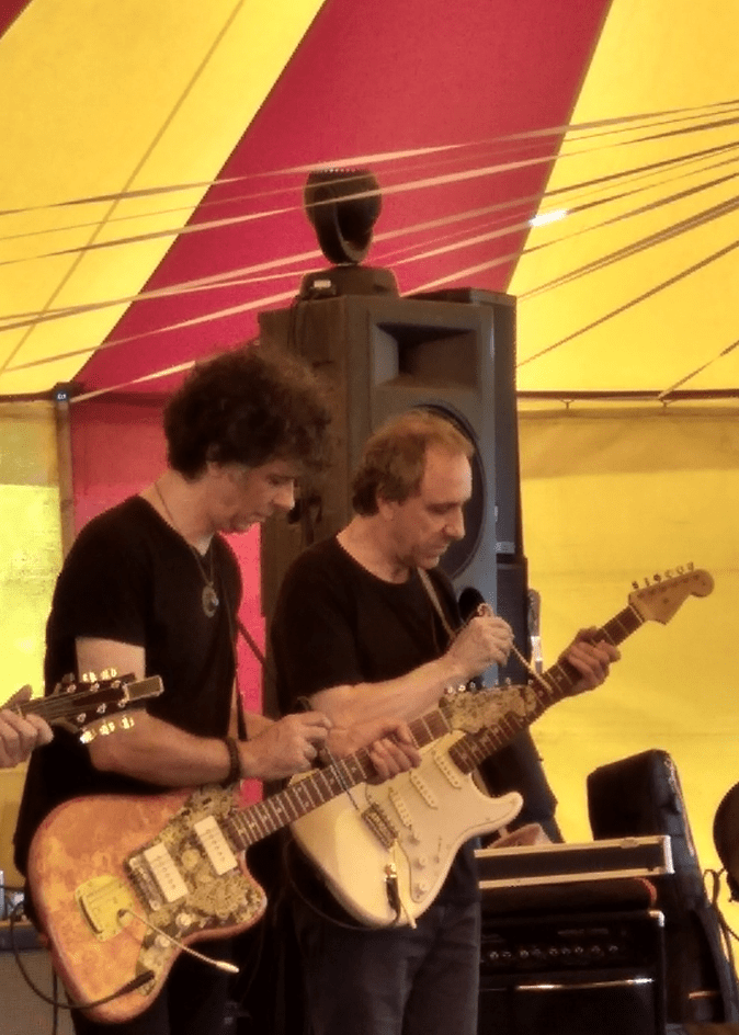 This line up had the honour to perform as the Steve Hillage Band, in 2019 and 2023. Steve & Miquette recruited us to perform a series of shows playing music from his classic albums, ‘Fish Rising’, ‘L’, ‘Motivation Radio’ and ‘Green’. It was a fantastic experience to see these two amazing artists at work. We played in many nice places, including Loreley in Germany, where they used to do Rockpalast, memorable gigs at Shepherd’s Bush Empire and Friars Aylesbury, and also recently at a festival in Poland where we had the pleasure to meet Nick Mason in person. Nick is a very sweet person and has a long connection with Gong/Steve, producing ‘Shamal’, ‘Green’, as well as, of course, ‘Rock Bottom’ by Robert Wyatt.