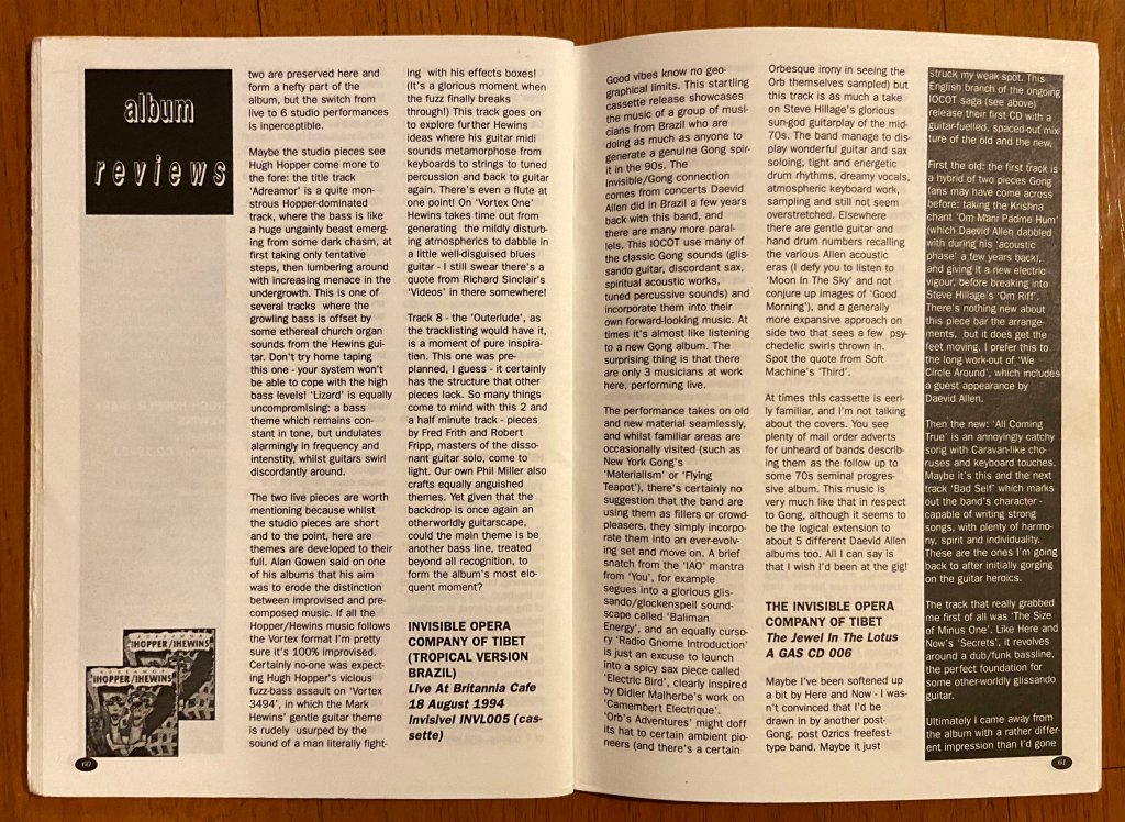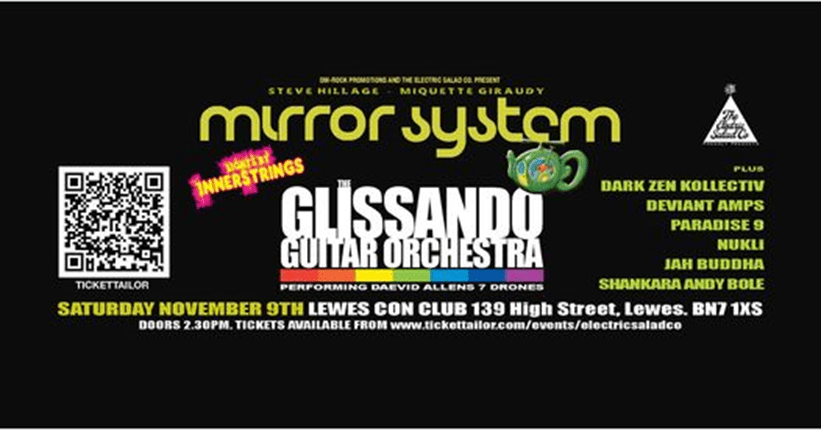 Daevid said ‘you have to do it because you are Gong’. Gong had had a similar situation (when Daevid quit the band in the Seventies) and the band carried on, ‘so you have to carry on because I put this band together. The first thing that was suggested was that maybe we could try a singer – and mentioned some names like Tim Hall (the singer in the UK Invisible Opera Company of Tibet), but then it was so confusing with his health situation that he stopped communicating. So what happened at the end is that he persuaded us to do the gigs and we did the tour but only two dates in the UK. There were six or seven gigs in France.