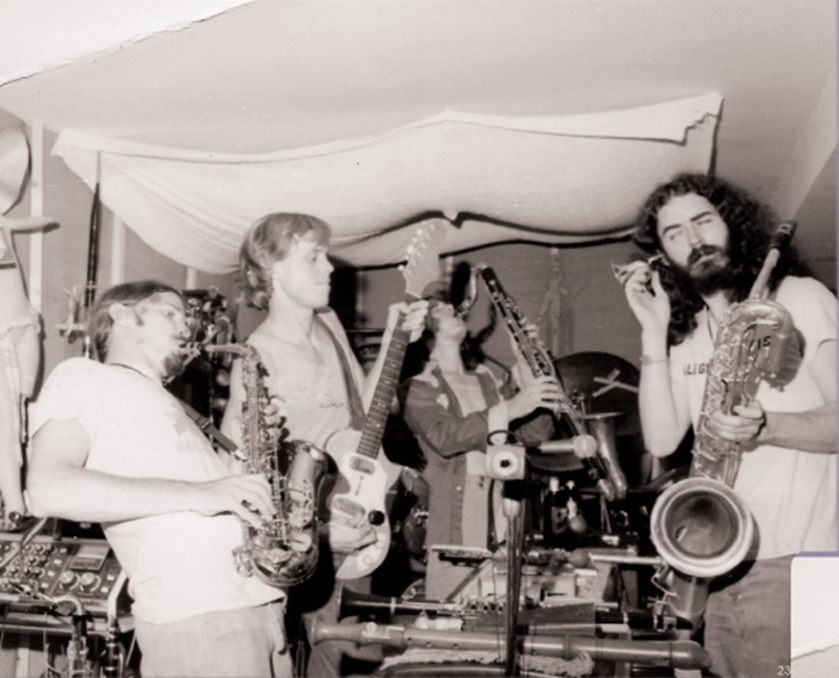 The Muffin Summer Camps at Tom’s house in Virginia came out of necessity; we needed a place to rehearse 24/7 for at least a week just to get into shape for the festivals that we were starting to play. They were also ideal for writing and rehearsing new material for the next albums. It was the closest thing we got to what resembled the old ‘Buba Flirf’ group house. It was Paul who somehow got in touch with Marshall Allen in Philadelphia and invited him down to DC to record with us over at Paul’s house (Allen, appears, alongside fellow Sun Ra Arkestra member Knoel Scott) on a further Muffins album ‘Double Negative’)