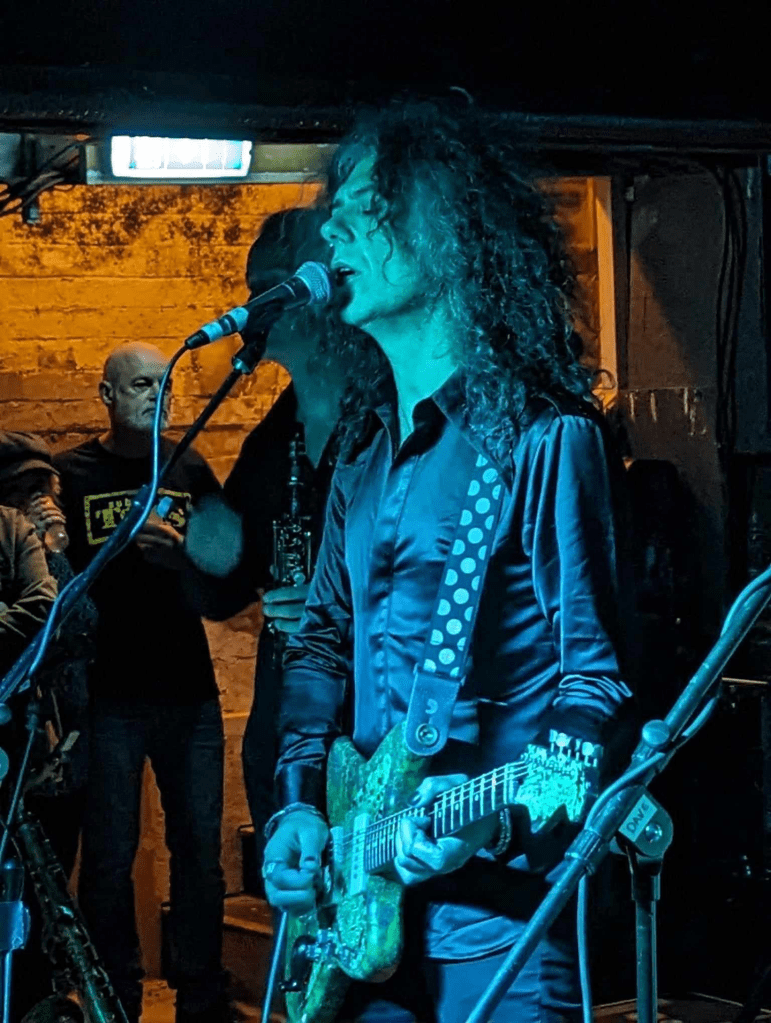 Kavus: it was actually one or two things we’ve not done before. One – it was an instrumental, and two – it was using the dotting technique. Do you know about dotting? So what dotting is when you play with a delay, but you play against it. So you’ve got the way that say for example Brian May would use a delay where he kind of plays with it. So it sounds like a big orchestra, but if you play against it, you sort of bounce against, I think you’re like playing in triplets against it. Steve Hillage uses it a lot. Steffe uses it. Ed Wynne uses it a great deal, you know, and I remember reading an interview with Ed Wynne probably from the 90s talking about dotting and he says, “Yeah, it turns you as a guitar player into a human sequencer”, which is a great way of putting it. And I’ve always done bits of dotting right back to my old metal space rock band. But in a way it is, for want of a better word, a space rock cliche or a trope. So we we’d never actually done it before with Gong, but I had that kind of dissonant dotty thing and in band practice turned into this thing and it was one of those ones where I was just like “ah fuck it. Let’s do it. Let’s do it”. I know it’s almost a bit of a Gong/ space rock/ Steve Hillage cliche but we’ve never done it and I love dotting. So let’s do our dotting track.