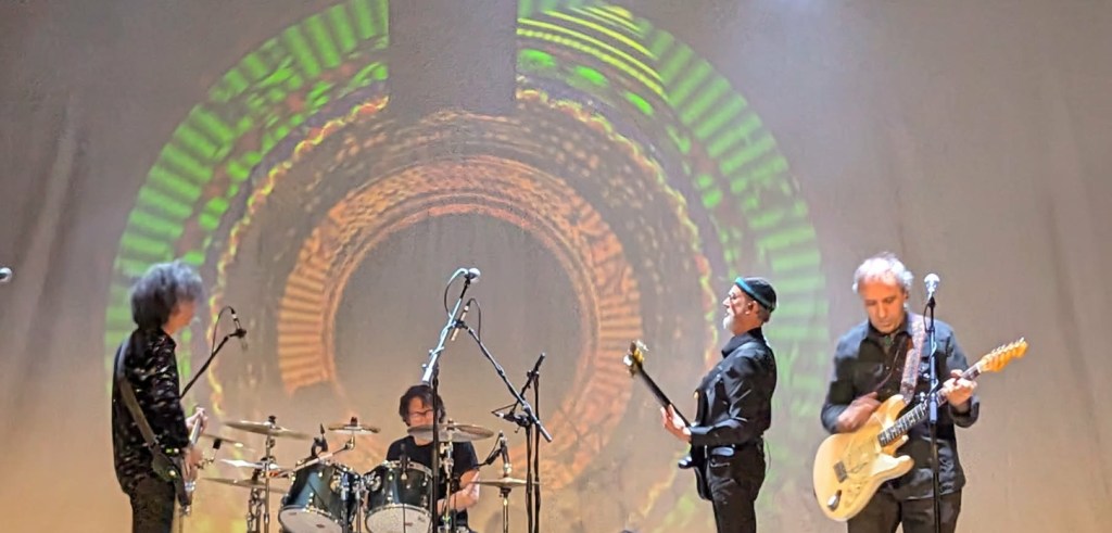 Gong were opening tonight, at the incongruously random (and early) start time of 6.50pm, and if Kavus told Facelift in his interview in January that one of the features of joint tours was to ‘pick your best champions’ for your shortened set, then firstly, they got their selection spot on, and secondly, it still didn’t feel particularly truncated, with the band’s performance extending to an hour and a quarter.